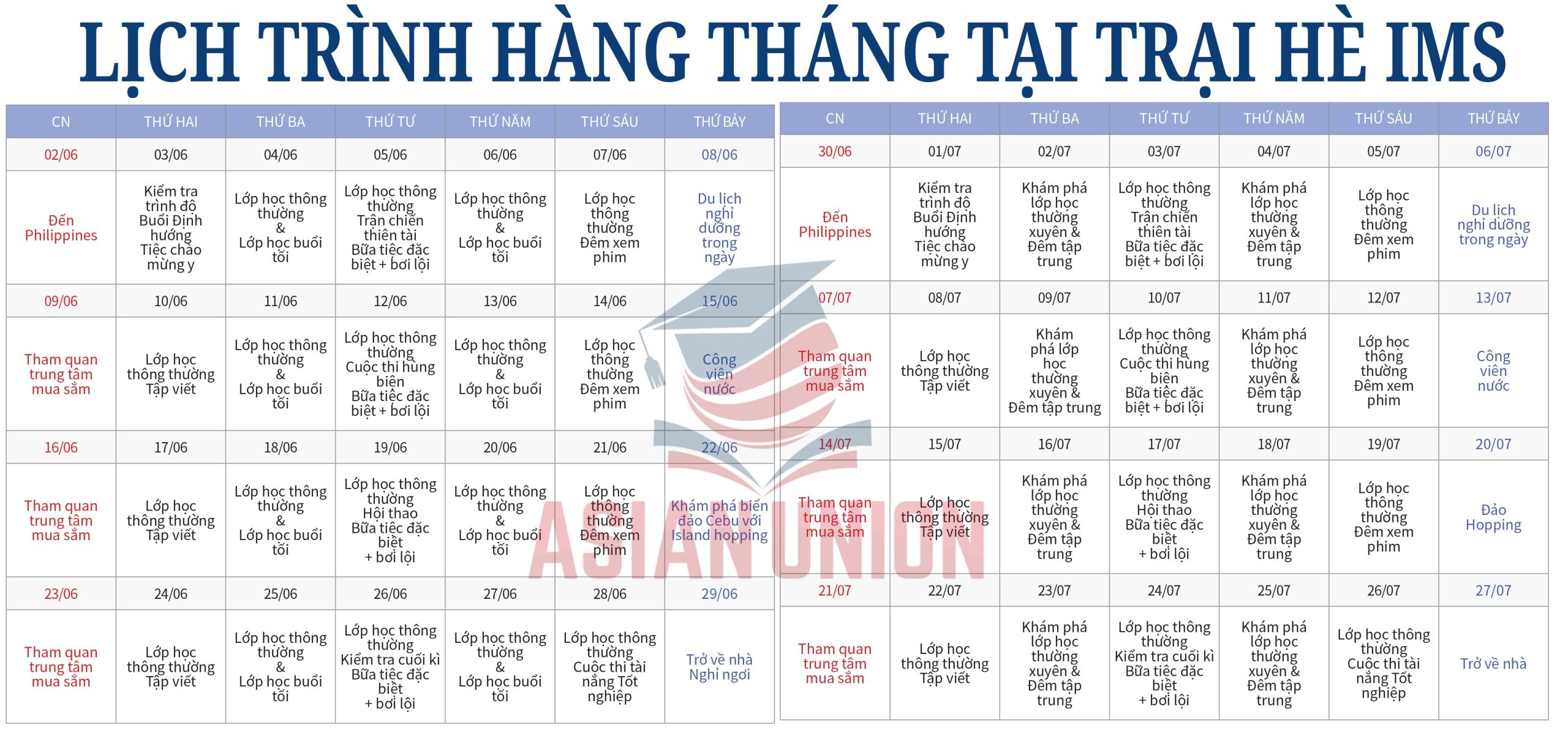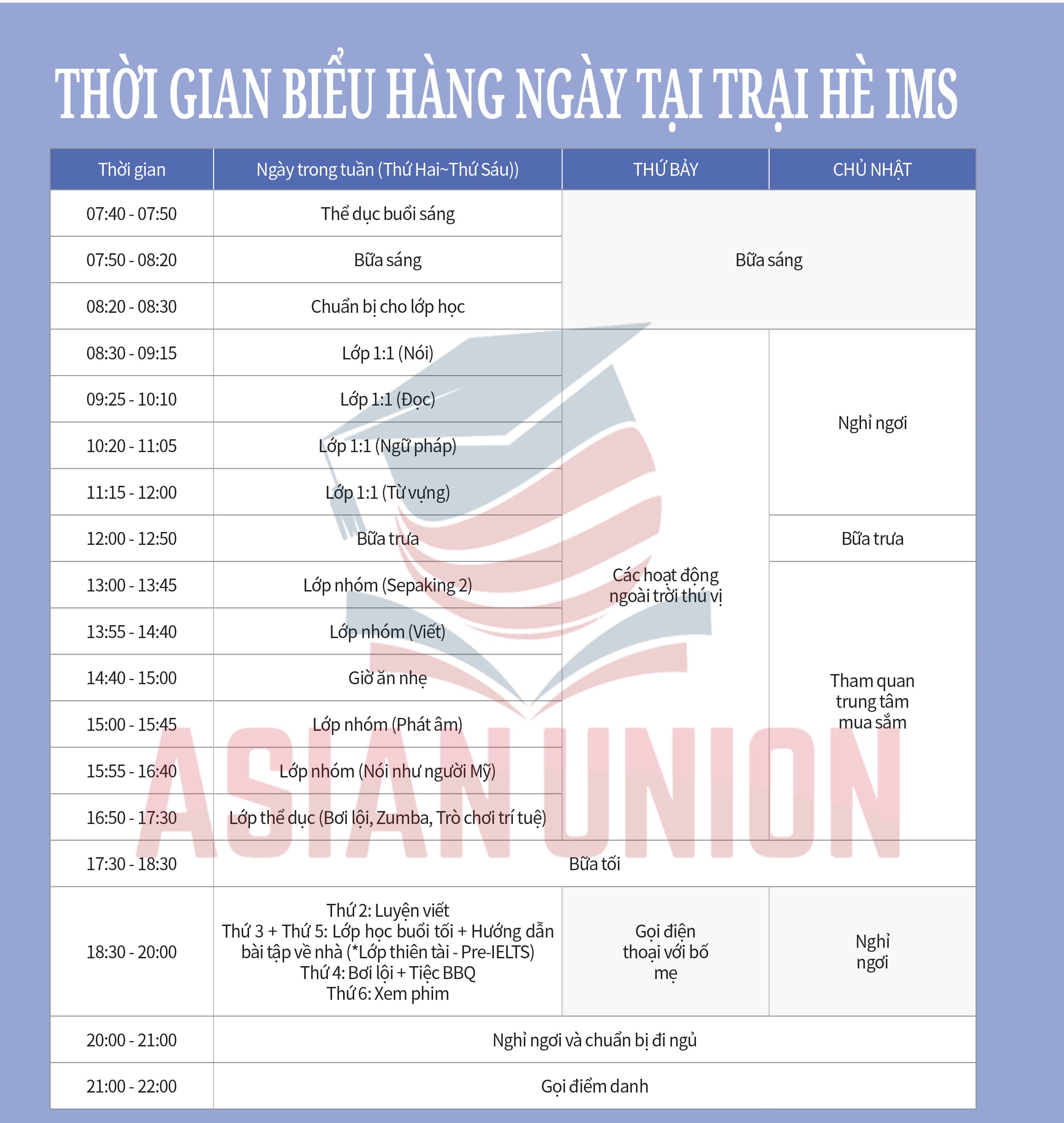 3/ Thời khoá biểu khoá du học hè Anh ngữ IMS Philippines
